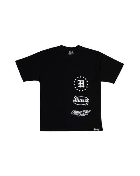 The Stacked Tee brings together three distinct variations of the Hitters logo all running vertically down the left chest. Each one represents a different stage of your fight: the start, the struggle, and the rise.